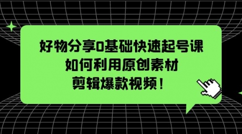好物分享0基础快速起号课:如何利用原创素材剪辑爆款视频!