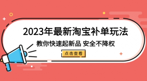 2023年最新淘宝补单玩法,教你快速起·新品,安全·不降权(18课时)