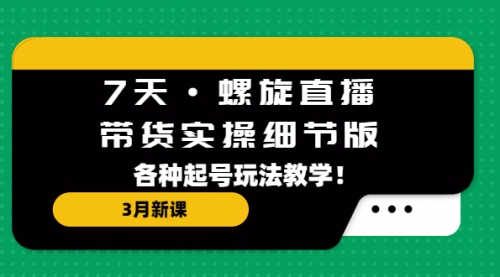 7天·螺旋直播·带货实操细节版:3月新课,各种起号玩法教学!