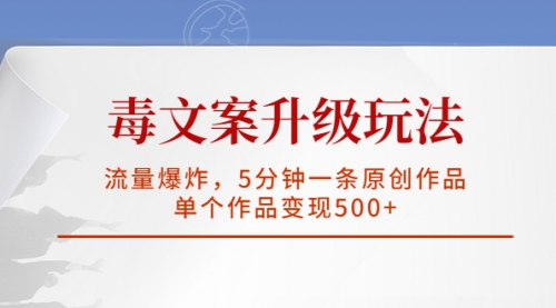 毒文案升级玩法,流量爆炸,5分钟一条原创作品,单个作品变现500+