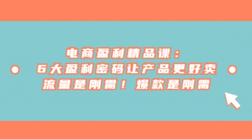 电商盈利精品课:6大盈利,密码让产品更好卖,流量是刚需