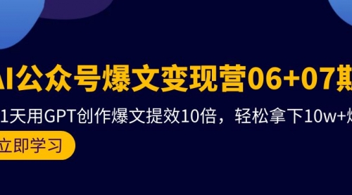 AI公众号爆文变现营06+07期,21天用GPT创作爆文提效10倍