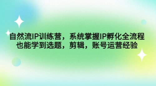 自然流IP训练营,系统掌握IP孵化全流程,也能学到选题,剪辑,账号运营经验