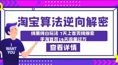 淘宝算法·逆向解密:纯黑纯白玩法7天上首页纯搜索手淘首页14天流量过万