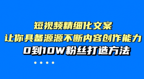 短视频精细化文案,让你具备源源不断内容创作能力,0到10W粉丝打造方法